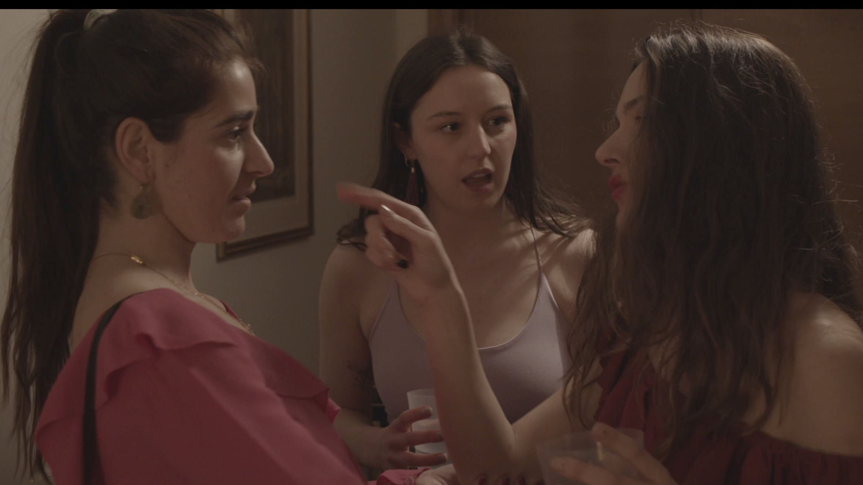 Two young women unexpectedly find each other at a party but fail to connect because their mutual friend incorrectly labels them in turn as straight.